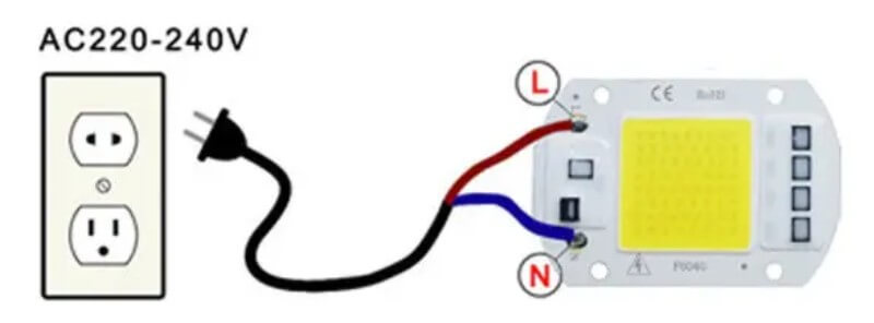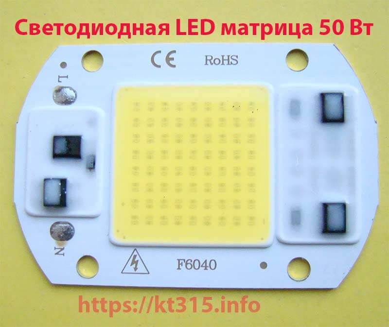 (IC-драйвер смонтирован на корпусе матрицы). Для подключения к сети светодиода, достаточно подсоединить провод с напряжением 220 В, а также для более длительной службы необходим хороший теплоотвод (радиатор)