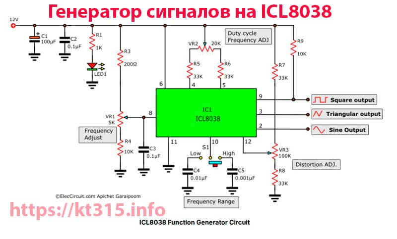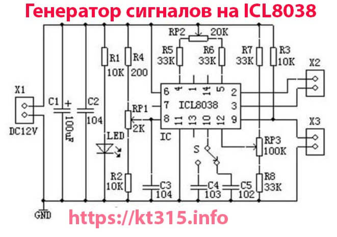 Генератор функций на микросхеме 8038 (синусоидальные, треугольные и прямоугольные сигналы)