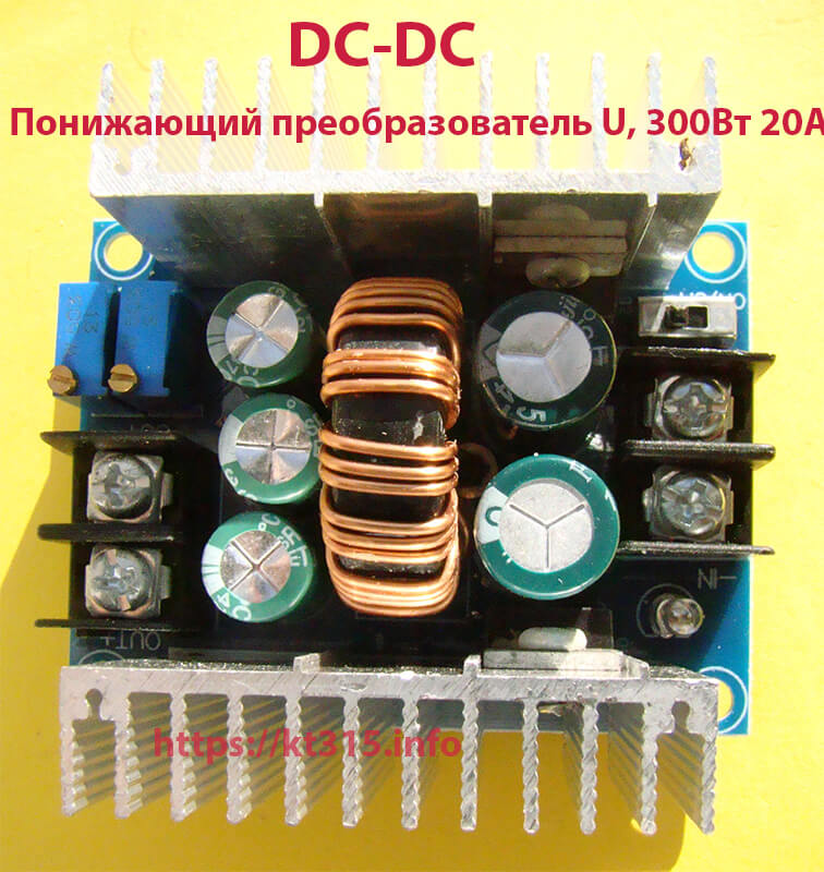 Модуль предназначен для понижения напряжения DC-DC, и применяется для питания светодиодов, светодиодных лент, мобильных устройств, зарядки аккумуляторов от автомобильных сетей питания на 12 или 24В. Диапазон входного напряжения от 6 до 40В, выход от 1,2 до 36В. Максимальный выходной ток – 20 А. Модуль оснащен подстроеным резистором. Регулируемый импульсный стабилизатор напряжения предназначен как для установки в радиолюбительские устройства с фиксированным выходным напряжением, так и для лабораторных блоков питания с регулируемым выходным напряжением. Поскольку стабилизатор работает в импульсном режиме, он обладает высокой эффективностью и, в отличие от линейных стабилизаторов, не требует большого теплоотвода.