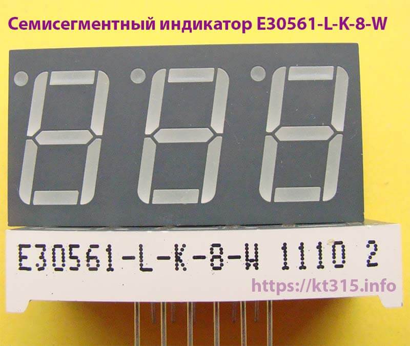 Семисегментный индикатор E30561-L-K-8-W — это многоразрядный (3 разряда) светодиодный индикатор от компании, имеющий размер сегмента 0.56 дюйма, зеленый цвет свечения и общий катод (OC), предназначенный для отображения цифр, часто используется в приборах учета и индикации данных.