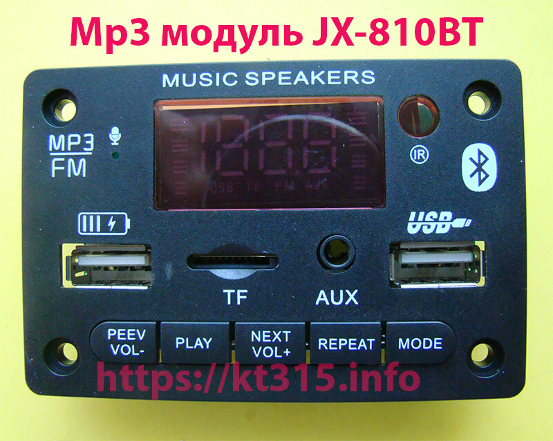 МР3 стерео модуль JX-810BT (плеер) с Bluetooth и функцией вызова и записи, линейным microSD, AUX входом и USB портом, FM радио, функция Hand free.