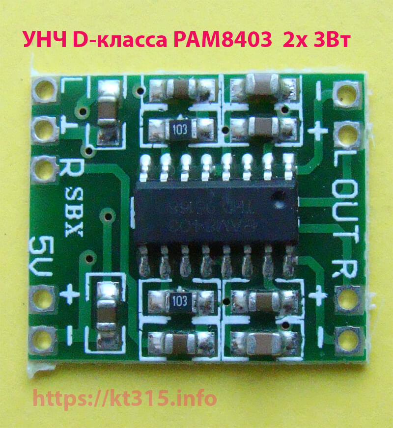 УНЧ D-класса PAM8403 2x 3Вт стерео